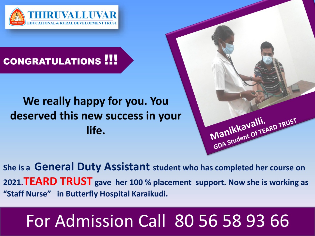 Thiruvalluvar TRUST – NO:1 Skill Training Institute has endeavoured to make its students fare exceptionally well in the life. The Institute had installed the infrastructure, employed well experienced faculty, designed, and delivered programs that help enhancing the communication, soft skills, aptitude, and technical skills of students which are required for making them employable. An excellent system is in place that considers all the issues that make a student employable. students will get 100% assured job right after the completion of training For the year 2020-21, lot of students were placed at companies with decent salary that have shown our significant growth over the previous years. The placements have provided them high-quality, diverse and professional opportunities.